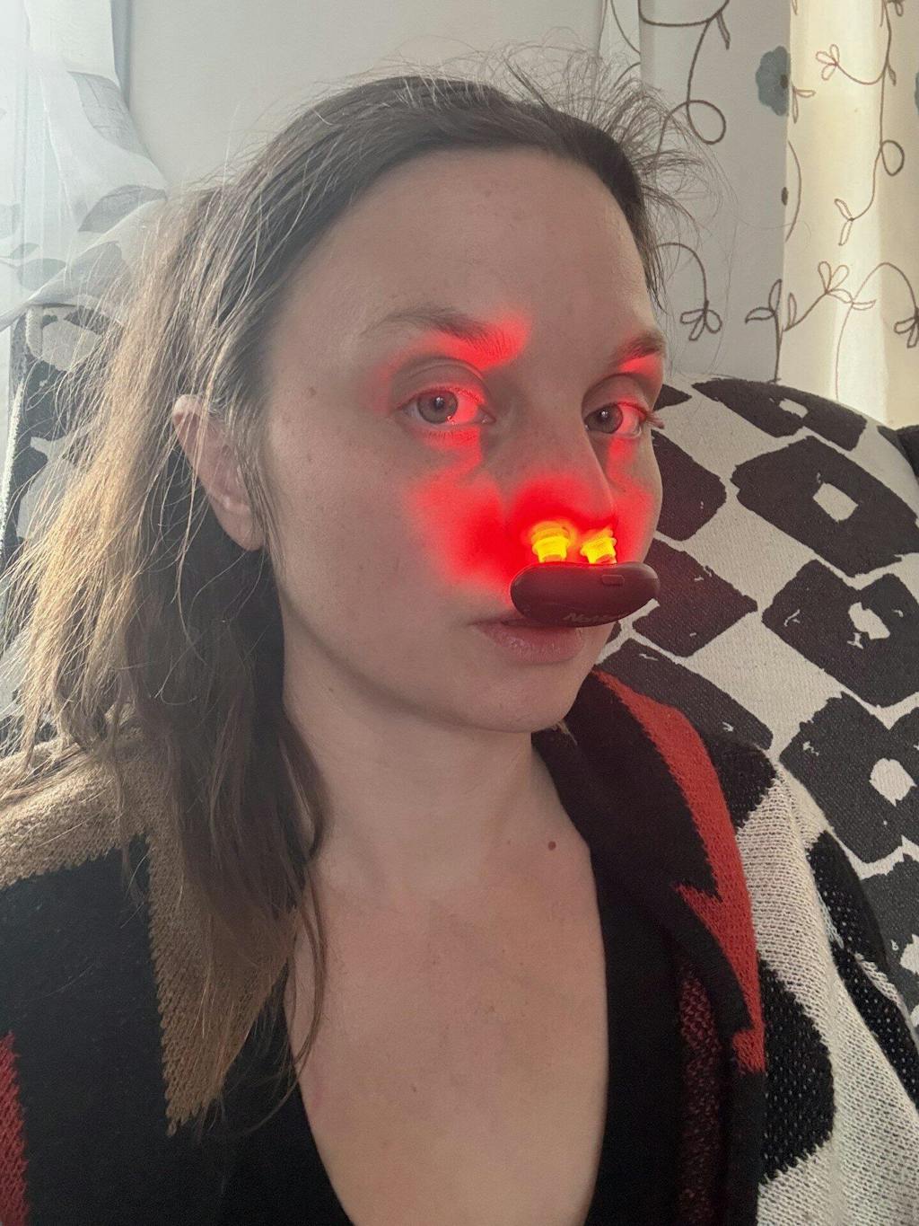 - Turn on the device and insert gently into the nose. Let the red light therapy work for 10 minutes.
