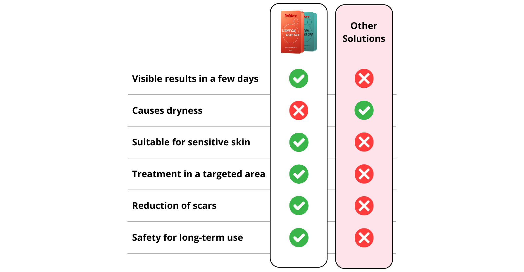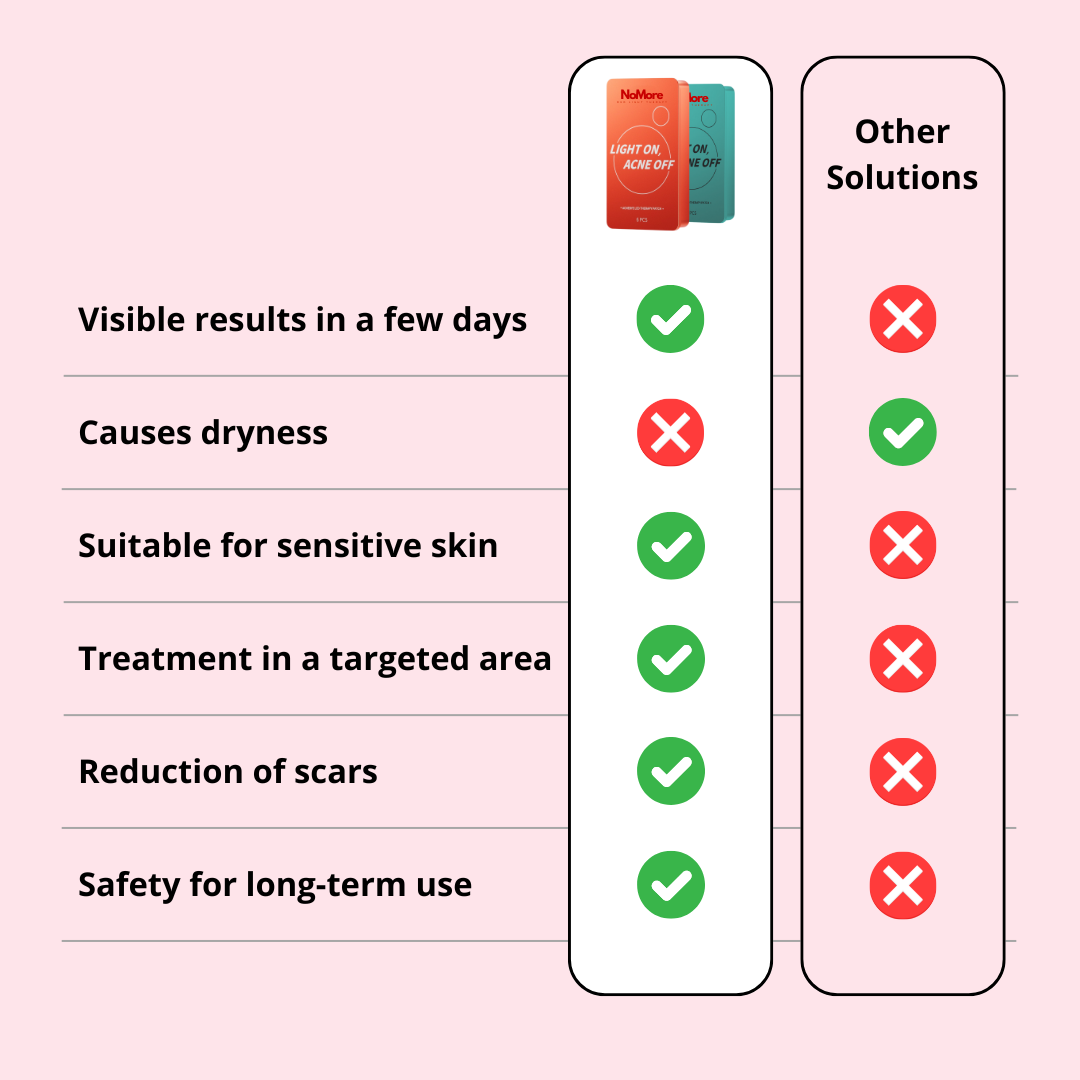 No worries! NoMore® Acne, powered by advanced Red and Blue Light Therapy, is your quick and effective solution for pimples and pimple scars.